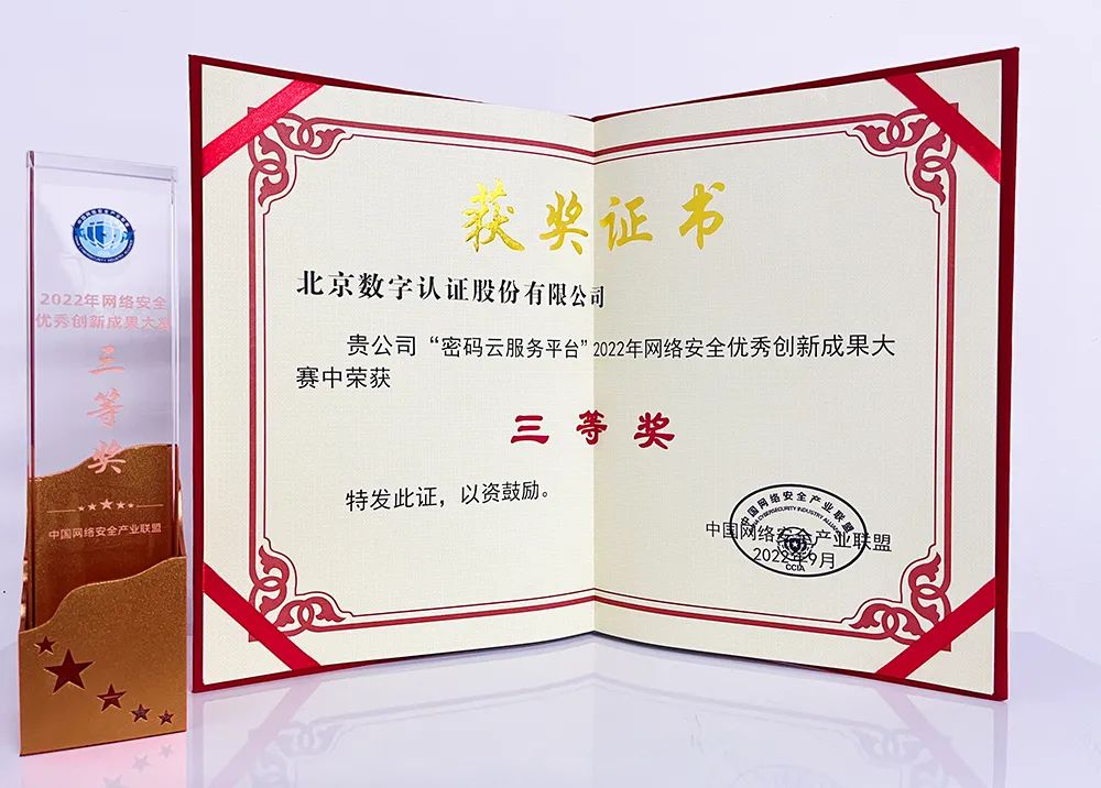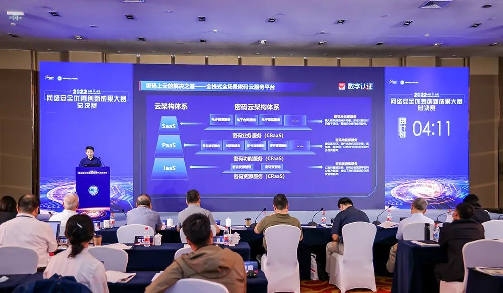 本次创新成果大赛共征集到140余家企业申报的240余项解决方案和创新产品,经过初赛、复赛的严格选拔,12支胜出的优秀参赛队伍在总决赛中并驱争先。北京bsports官网 必一运动股份有限公司报送的创新产品“密码云服务平台”深受专家评委的认可,在专家评分环节排名第三,这充分体现了“密码云服务平台”在安全专业性和技术创新性方面的含金量。最终“密码云服务平台”获得三等奖,成为总决赛中唯一获奖的密码产品。