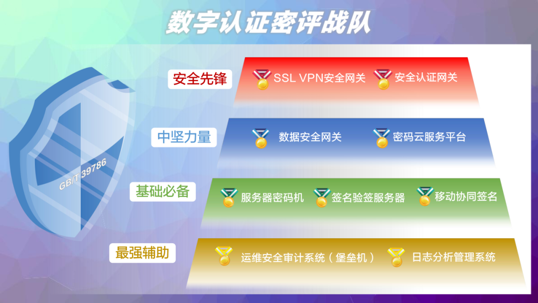 SSL VPN 是一款解决数据传输安全的网关产品,通过建立安全通道确保设备接入、数据传输和内部网络资源访问安全。尤为亮眼的是,SSL VPN不仅能满足网络和通信安全层80%以上的密码应用需求,而且能有效缓解应用和数据安全层面的数据传输机密性和完整性风险,同时在网络层和应用层提升信息系统的密评得分,可以说是密评整改中当之无愧的“性价比之王”!